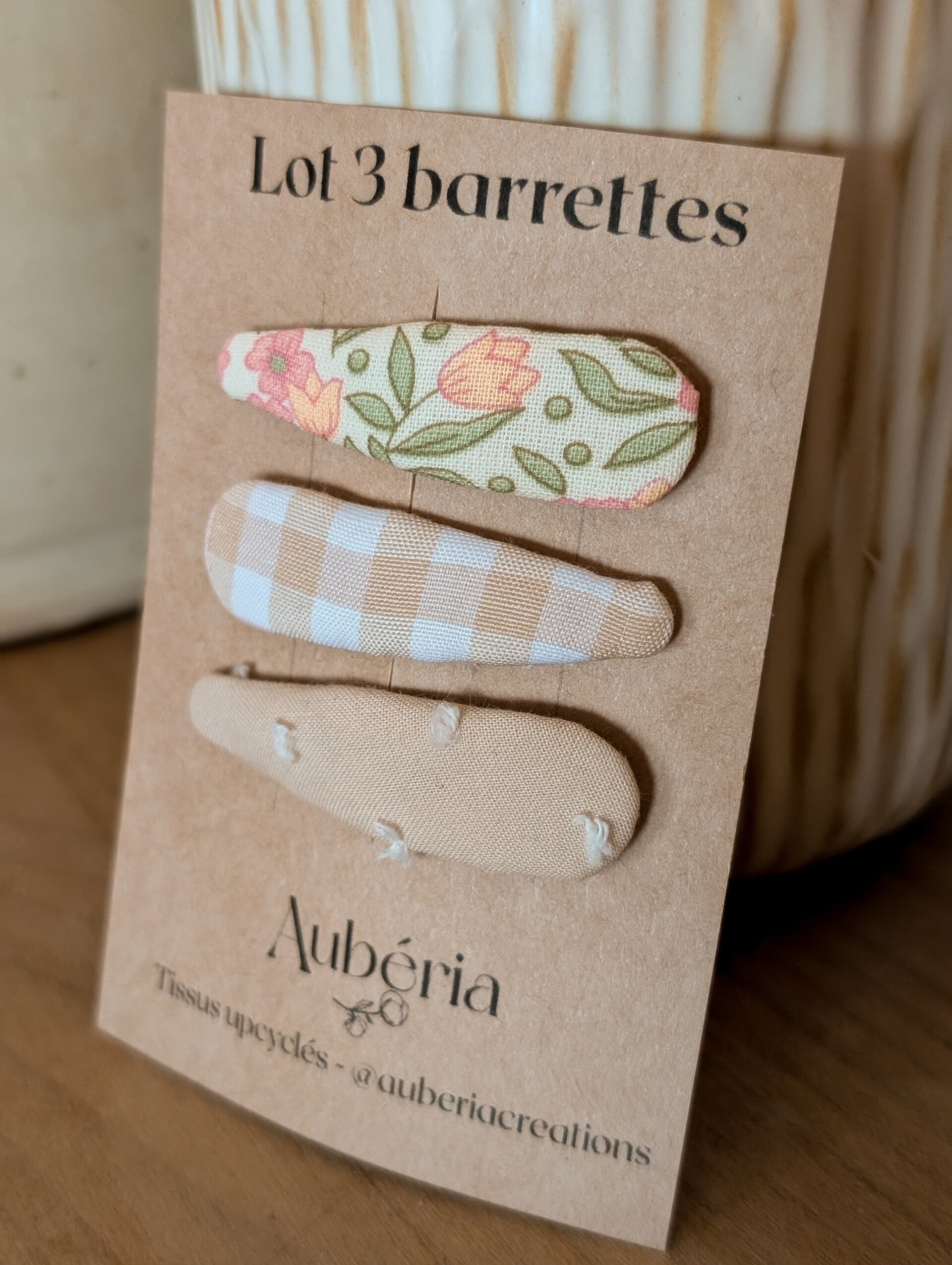 Chaque pièce est unique : couleurs, motifs et textures peuvent varier légèrement, rendant votre barrette vraiment spéciale.